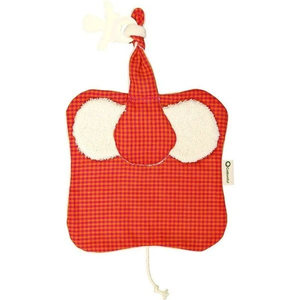 Pour les touts petits dés 6 mois, Amour, douceur et réconfort auprès de ce Doudou attache sucette Keptin-Jr Coton Bio Elly Rouge 26 cm couleur Rouge et orange. Un doudou bio de 26 cm en forme d’éléphant, dont la trompe servira à attacher la sucette afin de ne pas la perdre et les grandes oreilles en éponge toute douce seront de tout les câlins. La queue de l’éléphant en corde coton permettra à bébé de détendre ses petits doigts ou se chatouiller le nez…Un doudou en coton Bio issu de l’agriculture biologique (100% coton bio) à la texture amusante et douce.