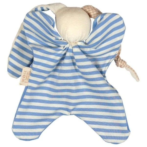 Pour les touts petits, Amour et rĂ©confort auprès de ce Doudou en coton bio Doudou Coton Bio Keptin-jr Toddel Large Bleu Bleuet 21cm, un doudou dont la forme en ailes de papillon offre 4 prises parfaites en plus de ses 2 longues oreilles mi velours mi jersey vichy Bleu et Ă©cru, dont l’une est nouĂ©e… pour ĂŞtre mâchouillĂ©e. La face du doudou Toddel est unie en velours Bleu Bleuet, le dos dans un jersey rayĂ© bicolore… Un doudou Ă©cologique dont la conception favorise le dĂ©veloppement de la filière bio et le rembourrage celle du recyclage. Un petit doudou très doux, facile Ă Â saisir,  pour se frotter et mâchouiller sans fin et accompagner bĂ©bĂ© de partout, ensoleiller ses journĂ©es, adoucir ses nuits et consoler ses ‘petits bobos‘… ce doudou en coton bio Toddel sera de toutes les aventures.Â
