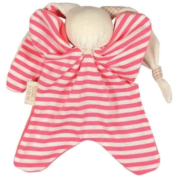 Pour les bébés bio dés 6 mois, Amour et réconfort auprès de ce Doudou en coton bio Doudou Coton Bio Keptin-jr Toddel Large Rose Corail 21cm, naturel et doux, dont la forme en ailes de papillon offre 4 prises parfaites en plus de ses 2 longues oreilles mi velours mi jersey vichy Rose Corail et écru, dont l’une est nouée… pour être mâchouillée. Un doudou écologique dont la conception favorise le développement de la filière bio et le rembourrage celle du recyclage. Un doudou très doux, facile à saisir, pour se frotter et mâchouiller sans fin et accompagner bébé de partout, ensoleiller ses journées, adoucir ses nuits et consoler ses ‘petits bobos‘… ce doudou en coton bio Toddel sera de toutes les aventures