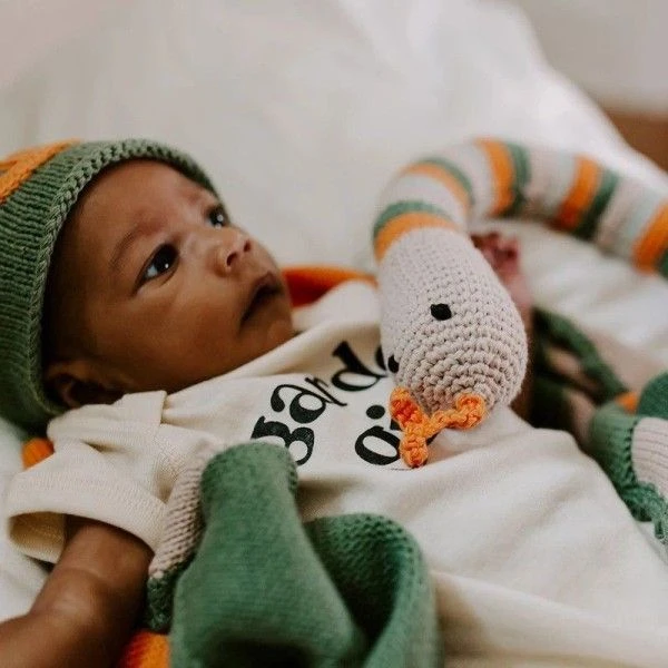 Pour les touts petits, éveil et réconfort avec cet adorable Doudou hochet Serpent Kaki 47cm Pebble® Maille Crochet Coton Bio, en Coton bio entièrement fabriqué à la main par des femmes bangladaises… Ce doudou hochet tout doux amusera bébé avec son petit grelot . Facile à attraper avec sa faible épaisseur, ce doudou hochet stimule l’ouïe et le toucher avec sa maille au crochet en coton bio tout doux. Et pour ne plus avoir peur des serpents comme les petits bangladais, bébé est en bonne compagnie, ce petit serpent a une bouille à croquer et les bébé sont ravis!
