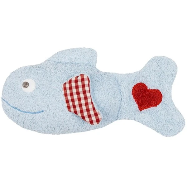 Un poisson bien doux et attentionné, pour accompagner bébé dans sa vie de tous les jours et le rassurer en toute sécurité. Avec son air joviale et souriant, ses nageoires vichy et ce coeur brodé sur la queue, notre poisson baroudeur qui cache bien des secrets, ce poisson saura prendre soin de bébé, dans ses moments d’éveil, de sommeil, pour apaiser les petits chagrins et l’accompagner dans toutes ses humeurs tout au long de la journée. Facile à saisir, à caliner, à secouer, cette Peluche Doudou Poisson Bleu Efie est idéal pour les touts petits comme les plus grands.