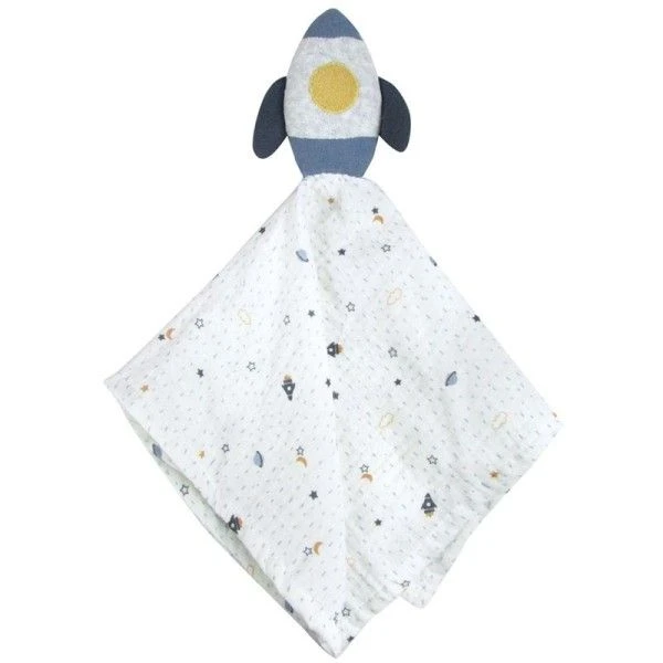 Pour les petits écolos, douceur et réconfort en compagnie de ce joli Doudou Plat Carré Lange Mousseline de coton bio Fusée Albetta® 35cm . Un doudou en mousseline de coton bio, de couleur bleu, avec un fusée toute douce en éponge pour accompagner tendrement bébé dans les bras de Morphée. Un incontournable pour tout petit.. Une petite fusée molletonnée pour bientôt lui dévoiler des petits secrets. Bébé trouvera réconfort et découverte de sensations diverses. Cet fusée sera parfait pour que les tout-petits se blottissent la nuit!