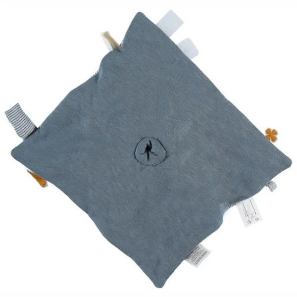 Pour les petits bébés écolo, et dès la naissance, Eveil, douceur et réconfort en compagnie de ce superbe Doudou Plat Carré Mouchoir Coton bio Âne Paco Bleu Noukie’s®. Un doudou Bio, rassurant et tout en douceur, et aussi prêt à affronter le monde en compagnie d’un tout petit. Un doudou de forme carrée en coton bio, avec deux pattes idéales pour mâchouiller. Grâce à son attache en velcro, ce doudou Paco en 100% coton BIO de la collection Iconiques s’attache facilement à la manche du pyjama Noukie’s ou à la sucette. Les étiquettes colorées, de matières et de tailles différentes stimulent l’éveil des sens de bébé en toute sécurité. Facile à saisir, à câliner grâce à ses appendices variés (oreilles, bras, jambes), notre Doudou Paco, saura prendre soin de bébé, et lui apporter douceur et réconfort.