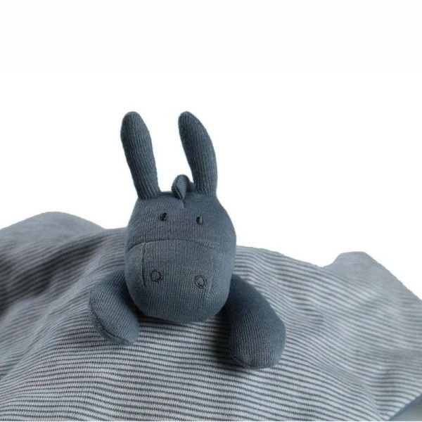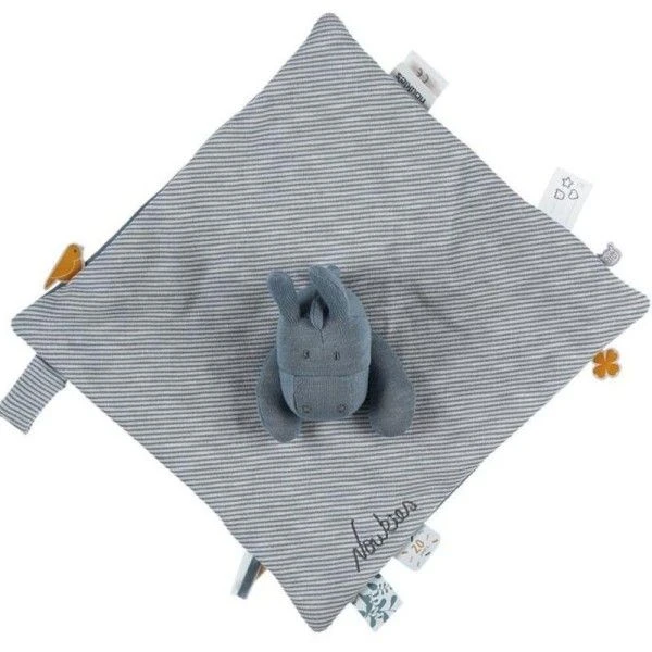 ✎ Les Doudous Plats Carrés Mouchoir Coton bio Âne Paco Bleu Noukie’s® détails