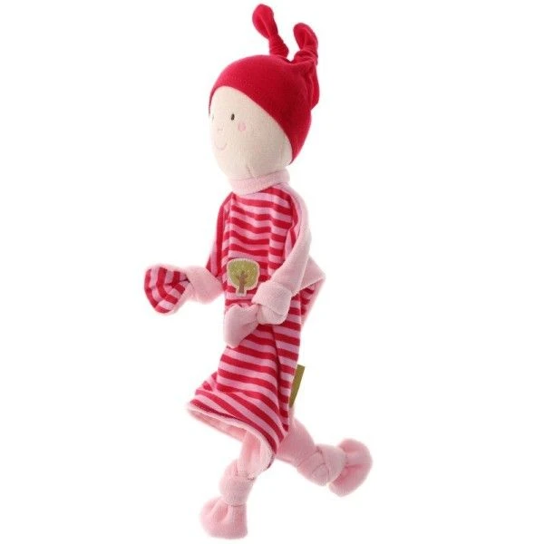 Pour les petits bébés écolo, et dès la naissance,… Eveil, confort & réconfort en compagnie de ce joli Doudou plat carré à nœuds en coton Bio ‘Sigikid® Doudou Plat Noeud Poupée Lutin Roses 26 cm coton bio’ de la gamme ‘Green‘. Protecteur de la nature et défenseur du développement durable, bébé le revendique avec cette amusante et adorable petite lutine, douce, tendre, protectrice, Chic & écolo. Le Jersey, Velour, et autres textures douces de notre petite amie en coton bio, offrent des sensations tactiles et visuelles inoubliables. Avec sa brassière rayée de roses, son bonnet rose Framboise, sa bouille souriante, cette petite lutine Chic et Bobo est facile a agripper, et prête à voyager. En compagnie de cette poupée Bio en coton, remplie de Laine naturelle, bébé est prêt à affronter le monde, en douceur, en couleur et en sécurité: La Poupée est en coton à 100%, un Coton Bio issu de l’agriculture Biologique (Kba : Agriculture Biologique Contrôlée).