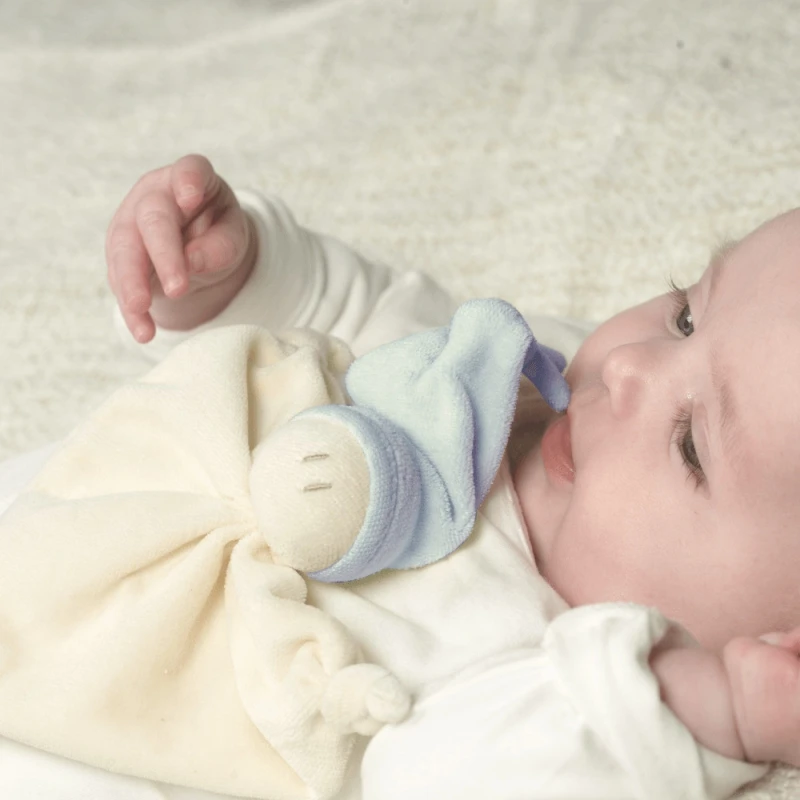 ✎ Les Doudous Keptin-Jr Coton Bio Zmooz Bleu Ciel small 16 cm détail