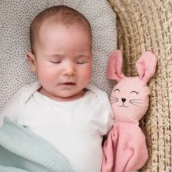 Doudou Plat Bébé Hoppa® LutinSisco Mousseline Rose Cerise 24cm Coton Bio GOTS – Doudou Bébé