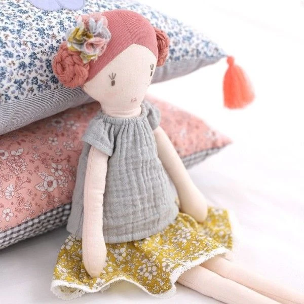 ✎ Les Grandes Poupées de tissu fleurie Léonie 40 cm Coton Bio Albetta® détails