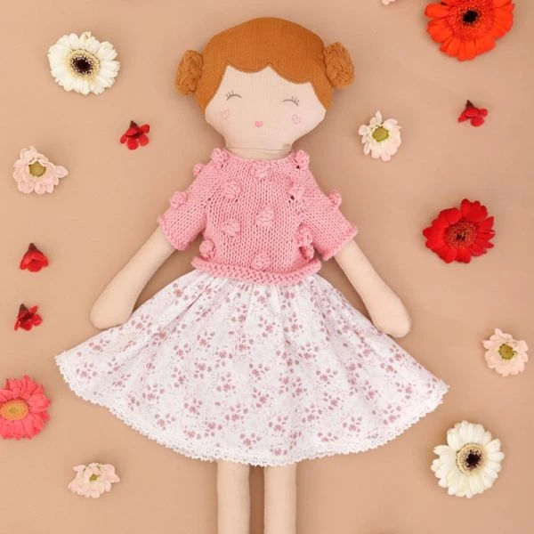 Pour les petits écolos, Eveil, douceur et réconfort en compagnie de cette adorable Grande Poupée Lin Robe de mousseline Agnès 40 cm Coton Bio Albetta®. Rencontrez Agnès, qui fait partie de la nouvelle collection de poupées automne hiver d’Albetta fabriquées à la main ! Agnès est vêtue d’un magnifique pull rose tricoté à la main et d’une jupe à imprimé floral recyclé. Avec ses chaussures grises chinées et ses joues roses roses, elle est tout simplement trop mignonne Sa tenue est entièrement amovible…Cette poupée sera de toutes les aventures et toutes les confidences…