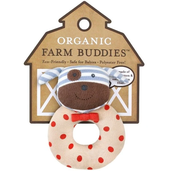 Pour les bébés bio, et dès la naissance, Eveil Physique, Jeux & réconfort avec ce Hochet Organic Farm Buddies™ Chien Boxer . Un petit Hochet anneau en coton bio, surplombé de la bouille de notre fameux boxer, une chien sympathique et trés joueur. Un hochet tout doux et bio pour passer de bons moments à aiguiser ses sens. Avec ce Hochet Organic Farm Buddies™, Bébé pourra se dégourdir les doigts, machouiller, découvrir les couleurs, les formes, ou le tintement de la clochette. Bien sur la sympathique tendre, et rassurante bouille de notre chien est là pour encourager bébé… Un doudou Hochet Organic Farm Buddies™, amusant et protecteur pour accompagner bébé dans ses premiers moments de joie et de jeu. Un doudou coloré et déluré comme les petits amis de la gamme Organic Farm Buddies™ de chez Apple Park.