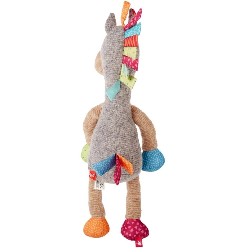 Pour les bébés dès la naissance, câlins éclatants de tendresse et de bonne humeur avec cette superbe Peluche Cheval Patchwork Sweety 39 cm Sigikid®, un beau cheval en peluche pour le plus grand bonheur des bébés et pour une découverte tactile et visuelle passionnante. Son corps est habillé d’un pelage façon tricoté de grande qualité, sa crinière et ses sabots sont resplendissant de couleurs, comme pour éveiller visuellement bébé et lui apporter gaieté et bonne humeur. Avec son grand ventre doux, ses longues pattes colorées, et son long museau à bisous, notre ami ne manque pas de prises pour le saisir et le mâchouiller. Ce très cher Cheval accompagnera bébé dans ses rires et ses petits moments tristes et pour un bon bout de temps. Facile à tenir, grignoter ou mâchouiller, ce doudou Cheval en polyester, sera de toutes les aventures.