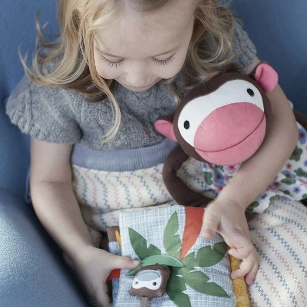 Pour les petits écolos défenseurs de la nature dés 24 mois, Eveil, Amour, Douceur et Réconfort avec cette Peluche Singe Robe à fleurs Frida 32cm Coton bio Franck & Fischer®. Un amusant Grand doudou singe tendre et amusant en coton bio pour accompagner les bébés bio & écolo… les rassurer, les amuser en toute sécurité. Un doudou d’une belle taille aux couleurs vives et un look Nordic raffiné habillé d’une belle robe à fleurs. Un parfait doudou qui sera de très bonne une compagnie pour tous les jours. Avec son corps en jersey de coton marron, ses longues pattes, sa robe en tissu et sa gentille bouille, notre Petite singe ‘Frida a vraiment un look écolo. Fabriqué à partir d’un coton bio issu de l’agriculture biologique, et rembourré de fibre 100% polyester, ce jouet est celui des petits écolos câlins….