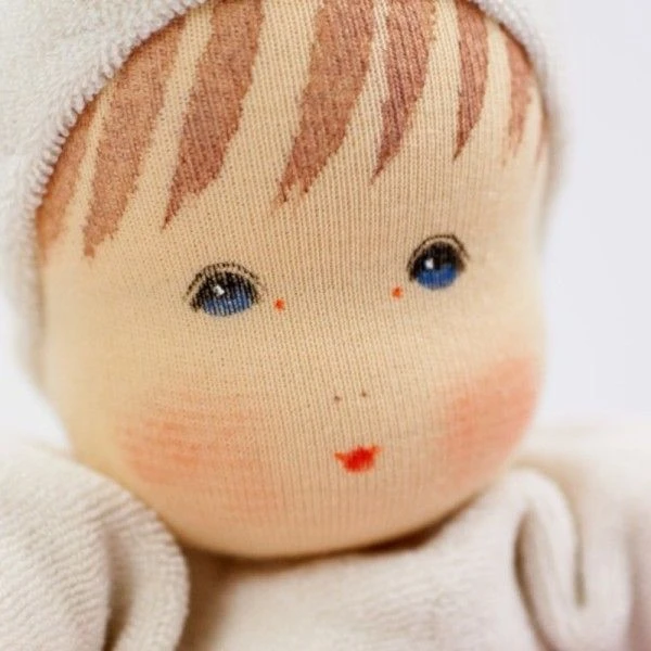 ✎ Les Poupées de Chiffon Nanchen® Natur Poupon Waldorf MOPS Coton Bio (Kba) Écrue & Rose 29 cm détails