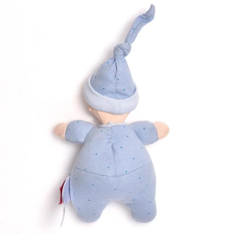 ✎ Les Poupée de chiffon premier âge bleue à pois 22 cm tête caoutchouc naturel Bonikka® détails