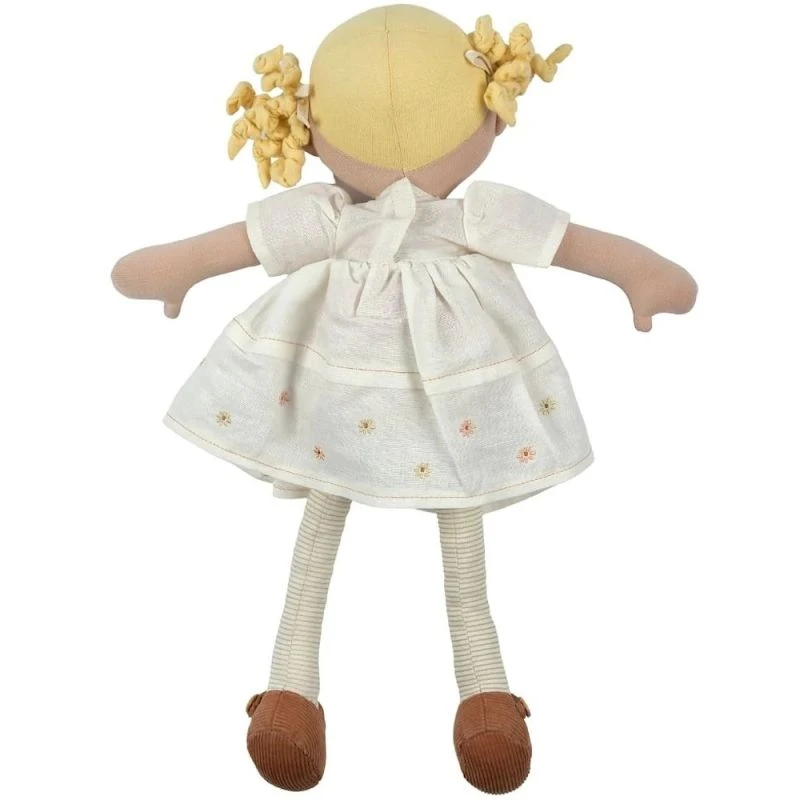 ✎ Les Poupées de chiffons aux cheveux blonds Priscy en robe de lin blanc 42cm Bonikka® détails