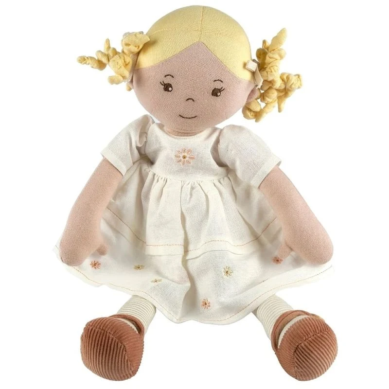 Pour les petits écolos dés les premiers mois et bien après, éveil confort et réconfort avec cette grande poupée de chiffons habillée d’une jolie robe de lin blanc brodée de fleurs, élégante et souriante, lumineuse de beauté. Une adorable première Poupée de chiffons aux cheveux blonds Priscy en robe de lin blanc 42cm Bonikka. Une poupée en tissu tendre, saine et naturelle idéale pour accompagner les touts petits, puis les suivre plus grand, tout au long de la journée et pour adoucir ses moments difficiles. Une jolie poupée de grande taille, que les enfants peuvent habiller et déshabiller et ainsi développer certaines nouvelles compétences comme l’autonomie.