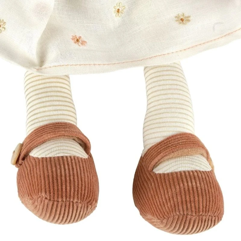 La poupée de chiffons Priscy est une poupée souple qui porte une belle robe crème en lin entièrement naturel avec des chaussures marron assorties, des collants crème à rayures et des rubans de cheveux crème. La robe de Priscy est amovible pour un nettoyage facile, ou vous pouvez l’habiller avec une tenue différente pour une occasion spéciale.